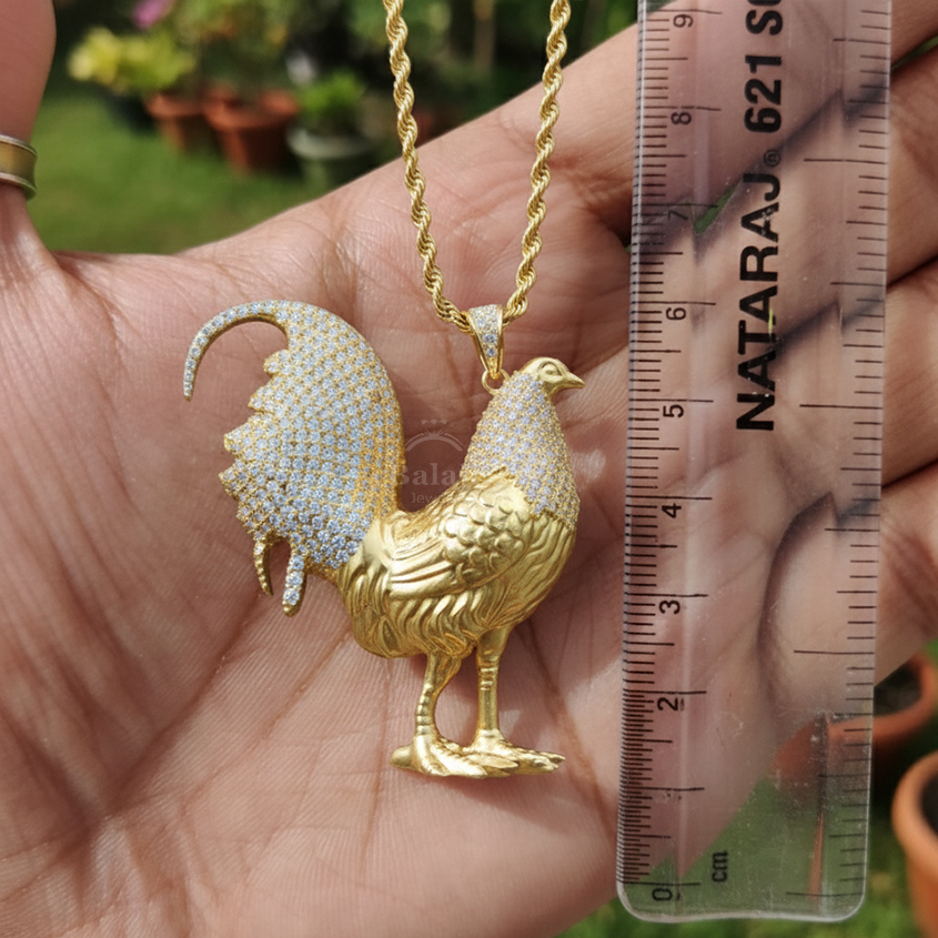The playful chicken design of this Custom 3D MOISSANITE Iced Out Solid 925 Sterling Silver Chicken Necklace is sure to bring a smile to anyone’s face. The 3D design adds depth and dimension to the Chicken Necklace, making it even more eye-catching. The chicken is adorned with dazzling MOISSANITE gemstones, adding an extra element of sparkle and shine. This Chicken Necklace is the perfect choice for anyone who loves unique and playful jewelry.