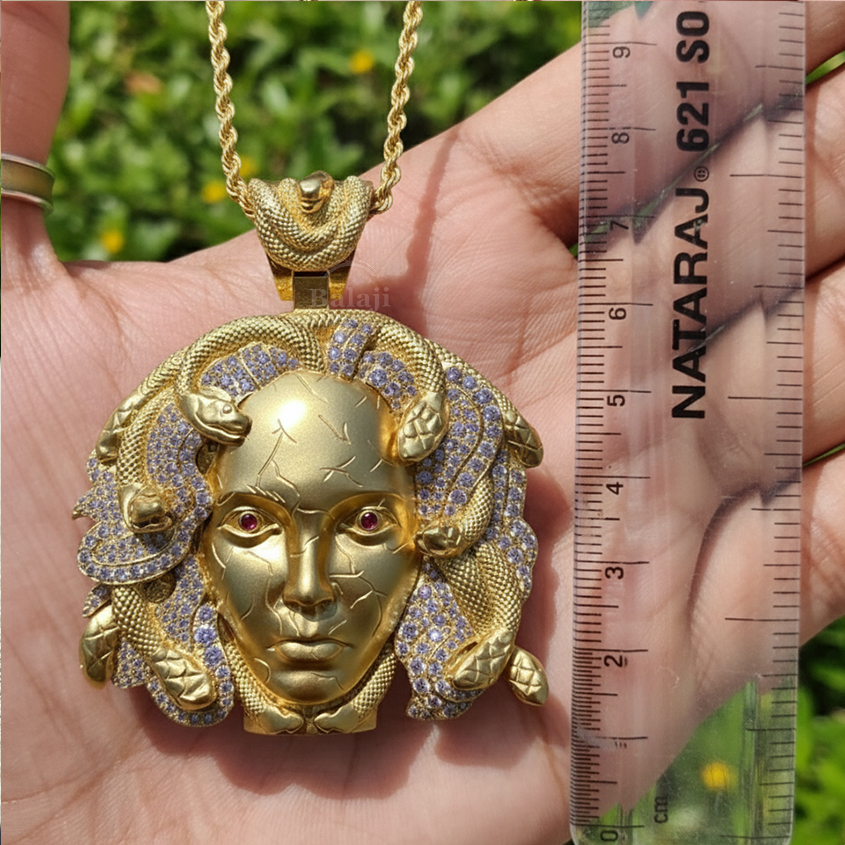 At Custom Moissanite, we pride ourselves on offering customizable pieces to suit each individual’s unique style. This Medusa Pendant is no exception, as it can be customized with your choice of gold, rose gold, or silver plating. Additionally, the Medusa Pendant can be paired with various chain lengths and styles, making it a versatile addition to your jewelry collection. Whether you prefer a bold and chunky chain or a delicate and dainty one, this Medusa Pendant can be tailored to suit your preferences.